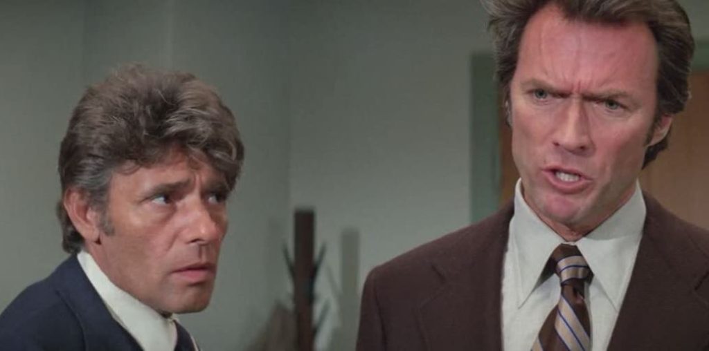 At 18 onscreen deaths, it’s roughly only half as high as Magnum Force, but still more than twice the original Dirty Harry‘s embarrassing single-digit count. Harry takes out five himself, while most of the rest belong to Bobby Maxwell (the kid really is kill-crazy), with a couple along the way for our rookie, Kate.
