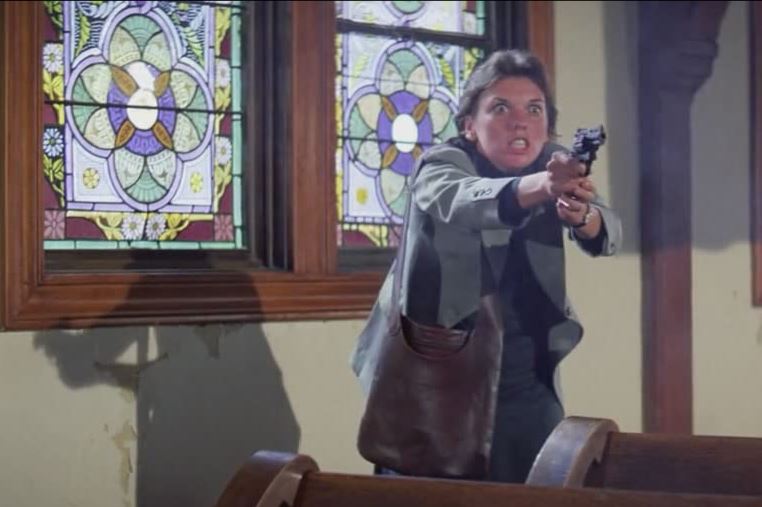 A scene between Harry and his next doomed partner, Kate Moore (Tyne Daly), makes all this phallic weaponry jazz explicit when she says, “Every other cop in this city is satisfied with a .38 or a .357. What do you have to carry that cannon for?” “So I hit what I aim at,” Harry replies. “That’s why.” “I see,” Moore says. “So it’s for the penetration.” Unfortunately, this is, like all other glimpses into Harry’s sexuality, resolutely and disappointingly hetero.