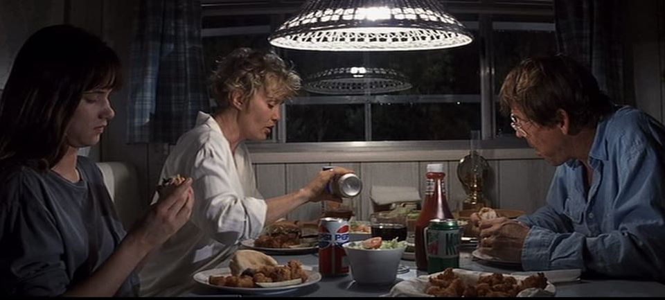 This is a rapey, face-chomping flick that makes the Colonel wince early on. However, upon regaining his composure he does begin to act like he has the upper hand. Not that he’s got anything to work with in the first seventy-five minutes. No one in their right mind could sneer at Bernard Hermann’s amped-up score, the excellent foreshadowing and the glorious cast, which includes a burgeoning Juliette Lewis, a highly strung Jessica Lange, the incompetent, faux tough guy Joe Don Baker, and a bespectacled, slimmed-down Nick Nolte effectively cast against type with his pastel suits and neatly combed short hair. However, the star attraction is the cigar-wielding, garishly dressed, white trash ex-con Cady (De Niro) hovering on the periphery of Nolte’s fractured family like the embodiment of a violent storm. Unlike Louis Cyphre, Cady’s a fully fleshed character with his sly humor, feral intelligence and self-righteous anger. He’s also a scary motherfucker, his single-minded malevolence typified by the way he strides out of prison and straight at the camera until his muscular frame blots everything out.