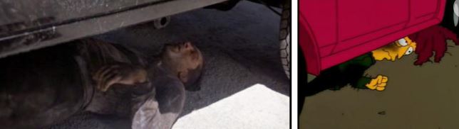 And so, the uncontrolled car goes happily looking for an accident… Christ, Norton beating himself up was a staggeringly naff attempt at black comedy, but this whacked-out driving stunt is too stupid for words.