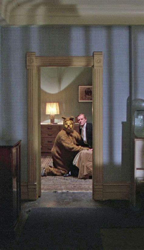 The next teddy bear we see? In the Overlook, on its knees, fellating a man with the rear flap of the costume down, these spirits look at Wendy through the open door who reacts as one might when one sees a ghost dressed as a Teddy Bear blowing a gent before he plows the bear’s back forty.