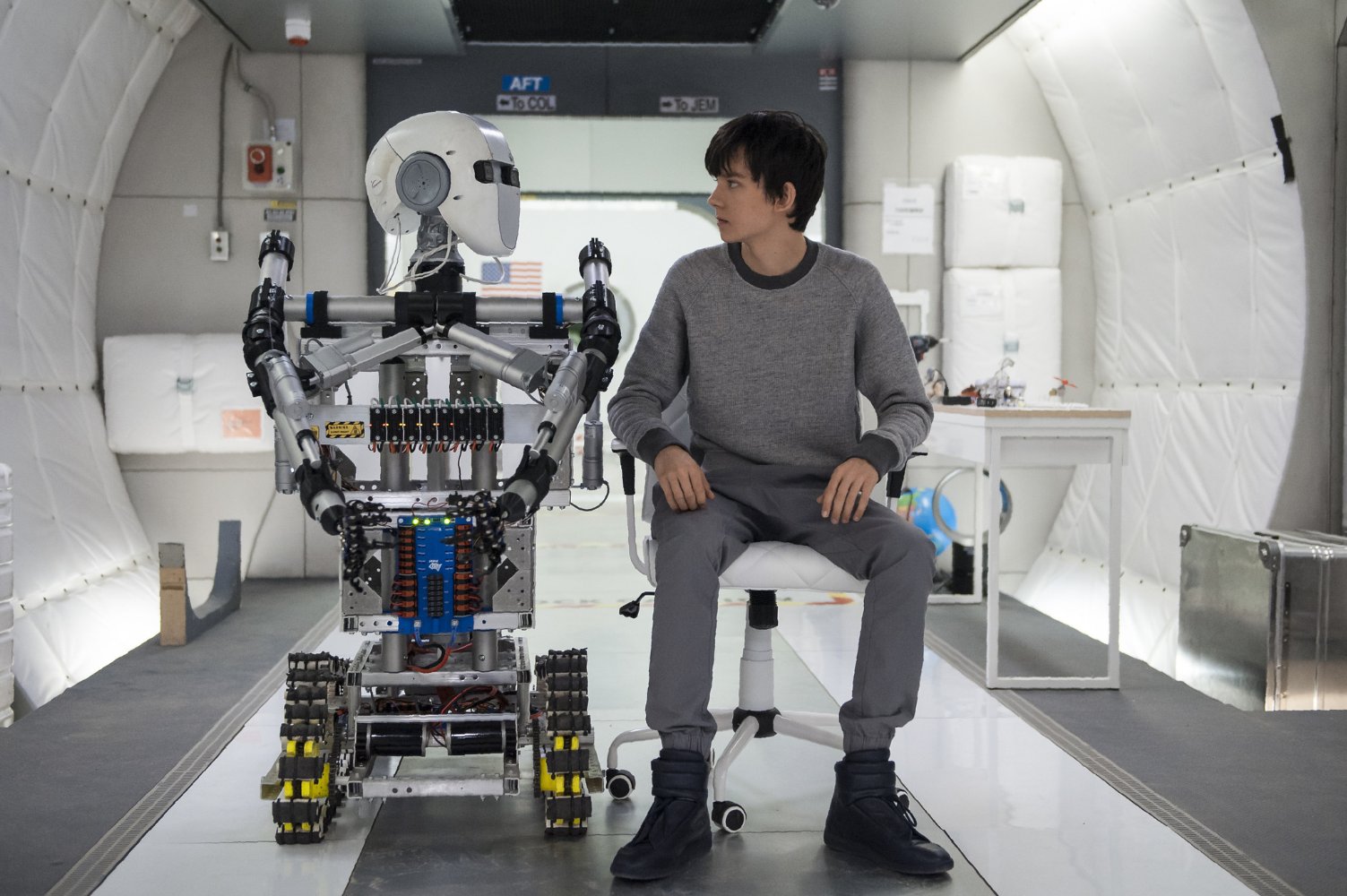 Fast forward sixteen years and, with the help of Mars’ low gravity, Gardner has grown into a tall, lanky teenager. No, taller and lankier than usual teenagers. He’s also super smart and ridiculously bored, so he does what all bored geniuses do – instant messages with a friend. Seriously, he figures out how to bypass the communications security and starts Skyping with a high school girl, Tulsa (Brit Robertson), whose name I also did not make up.