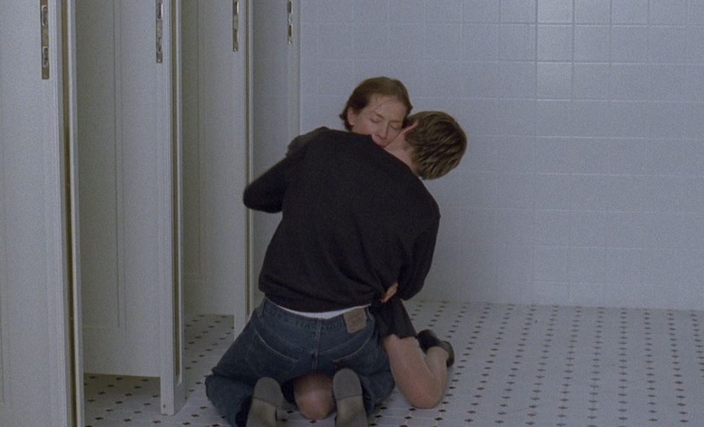 I think we’re also getting an idea she’s not your typical choccies and flowers kind of gal. And yes, I do enjoy how director Michael Haneke sets this perturbing scene to classical music. Well, who doesn’t like a bit of smut and refinement all mixed up, especially as it’s followed by self-harming with a razor blade in a bodily place you don’t even want to imagine?