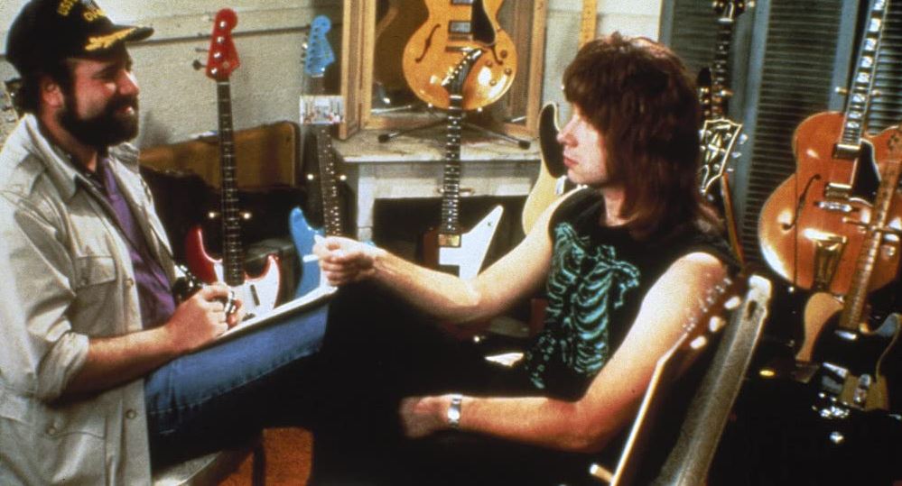 And so, to Rob Reiner’s Spinal Tap, a pitch-perfect mockumentary that gets rewatched every few years, even if it does stir up deep-rooted memories of shame. The director plays an avowed fan following an English five-piece band called Spinal Tap as they tour North America in 1982 to promote their latest album, Smell the Glove. Straightaway the cliches are captured, such as the too tight trousers, the onstage acrobatics and mishaps, the near-orgasmic self-expression, the demonic imagery, and the way guitars are aggressively wielded like huge penis-guns.