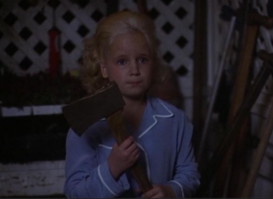 Unable to have kids, she gets her hands on a couple anyway, and in the process manages to make child abuse pretty damn funny. In particular, she treats her young daughter Christina to her full range of demented maternal tics. One moment she’s throwing her a lavish birthday party, the next she’s hacking her hair off. During a backyard swimming race Joan treats it ultra-seriously, telling the blonde poppet after her easy victory: “No one ever said life was fair, Tina. I am bigger and faster. I will always beat you.”