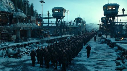 War for the Planet of the Apes. l’ll have to say that I looked forward to this movie with a fair amount of expectation. Why? Nothing else has really excited me this year since Get Out. Alien:Covenant was quite good, but the fanboy crying about it virtually ruined it for me. Free Fire was fun, but hardly a blockbuster, and Moonlight was a predictable yawner, stealing an Oscar from the rightful best movie, La La Land. Baby Driver? Kevin said it all in his review. I won’t mention the movies that I did not see, such as Logan and Wonder Woman. Oh, I mentioned them, didn’t I? Have I posted enough links? Good, maybe that will make up for the inexplicable product placement of the Coca’Cola truck in the movie.