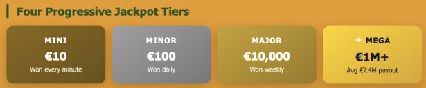 - Mega Jackpot – Seeds at €1 million minimum, averaging €7.4 million payouts