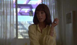 And then there is the mysterious character Willie, a pregnant woman who runs Millie’s favorite hangout, Dodge City, and spends her time painting swimming pools with bizarre reptilian images. Willie’s husband, Edgar, is a cartoonish lout; a ridiculously macho gun nut who flirts as if he is anything but a piggish clown. Edgar is the key to, well, something, as events transpire late in the film that alludes to a murder, but then again, we can’t quite be sure.