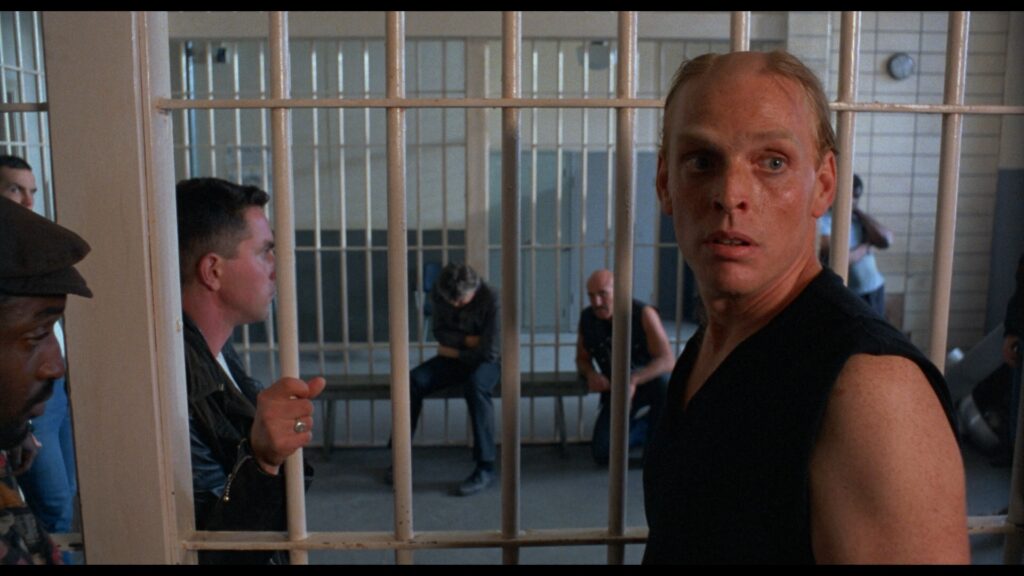 We all know his resume. Hundreds of murders, and that’s not even counting the dozens more he sanctioned with a wink and a nod. Rapes so plentiful, few women in the area remember a time when consent was even a thing. And drugs? Good lord, a moment of sobriety is a moment wasted. “We’re gonna get high, high, HIGH!”, he cries, a mantra that may have replaced “In God We Trust” as the national motto had there been a president worth a damn to fight for it. From jail cell to street corner, he is always and forever in charge, glaring the faithful into submission with unchecked power. That said, lest we think he’s all business, Fraker is not above a bon mot or two to keep things light. “Tell you what,” he informs Kersey, “I’ll kill a little old lady, just for you. Catch it on the six o’clock news.” We never really know if he made good on his promise, but I’m not about to bet against it.