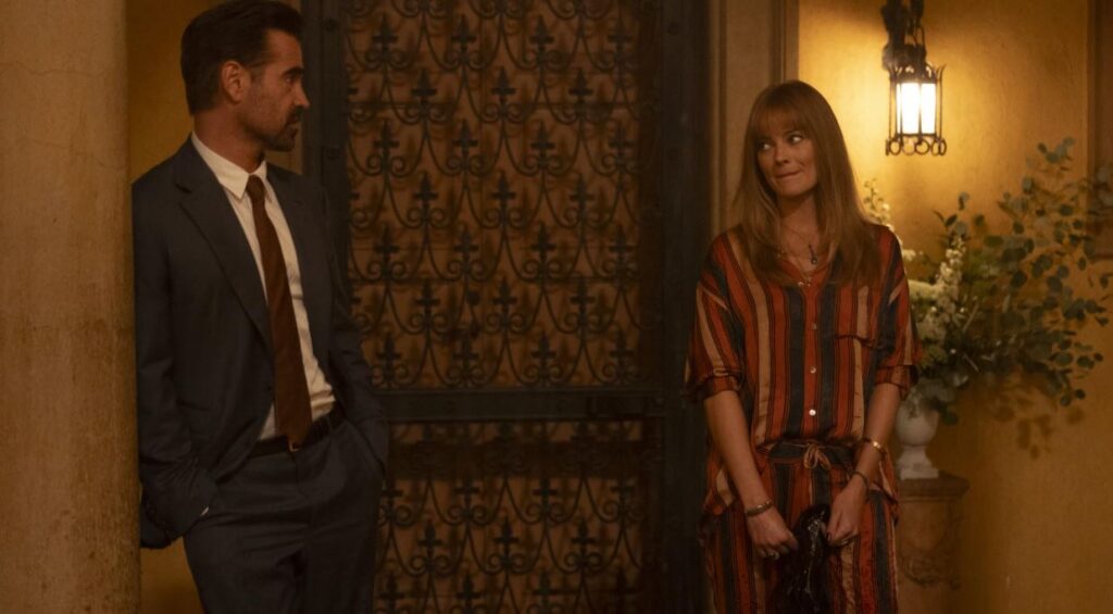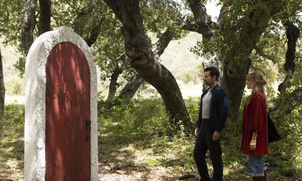 David (Colin Farrell) walks through a door into a very large room containing two rental cars. Two people sitting behind a desk urge David to come all the way in. The woman (Phoebe Waller-Bridge) peppers him with questions while the man (Kevin Kline) casually observes and agrees with her. In the end, she convinces David to rent the GPS to go with the 1994 Saturn he will be borrowing.
