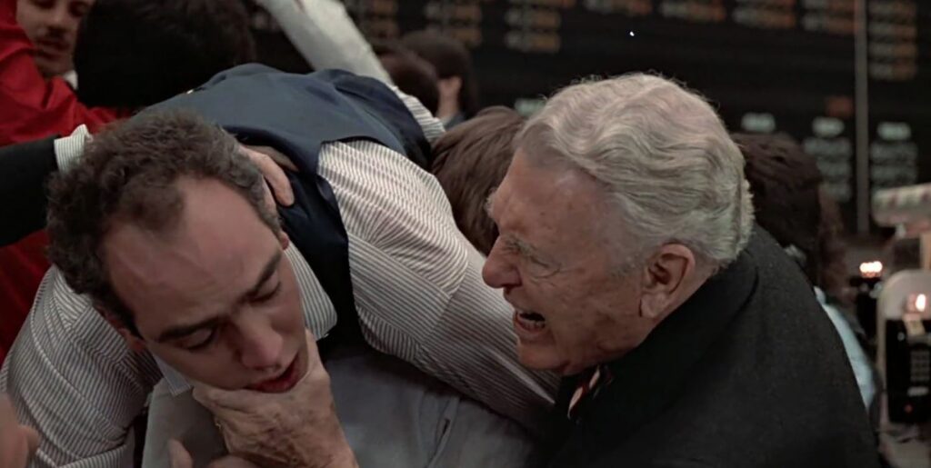 –”This is the last bastion of pure capitalism on Earth.” meaning, ‘we take all comers’. Um, yes but no. A seat on the exchange in 1983 was expensive, roughly 300k. Winthorpe seemed independently wealthy and maybe could have pulled a private seat, but if you forked out 300 duckets for the privilege of early on-set hypertension, would you be sitting on your fat ass at Duke&Duke.
