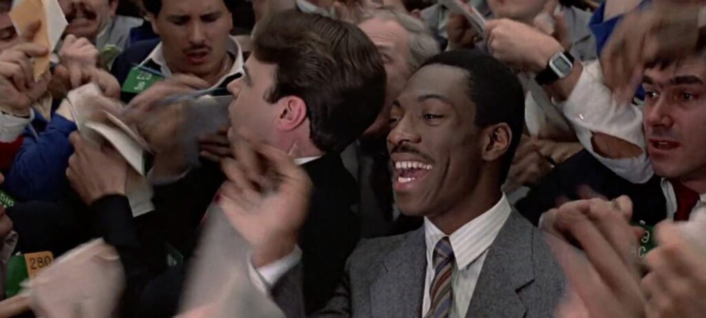 Using unreleased government information wasn’t illegal until the Dodd-Frank Act of 2010, some portions of the act, they say, were directly inspired by the movie. Why? Because they flat-out called the no-using-unreleased-governemt-data clause the ‘Eddie Murphy Rule’. And they still do. Life imitating art, or stuffed-suit politicians relying on Hollywood to do their job for them? You decide.