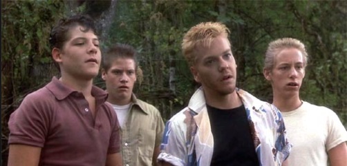 Ace got his comeuppance when he brought a knife to a gun fight, and Chris (River Phoenix) drew down on him with a pistol. “You can’t kill all of us”, said the bully. “Just you, Ace.” Ruthless!