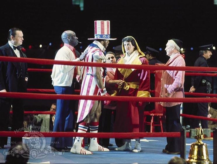 Life’s a curious thing, though, and sometimes you just gotta hang in there for your luck to change. This occurs when the latest opponent of the Muhammad Ali-like world heavyweight champion Apollo Creed (Carl Weathers) busts a hand in training, leaving the promoters desperately scrambling to keep any sort of match on schedule. The fast-talking, super-confident Creed believes America is the ‘land of opportunity’ and decides to offer the title shot to an unknown. Rocky is chosen because Creed likes his nickname ‘The Italian Stallion’ so it’s just as well he didn’t call himself The Dago Donkey.
