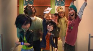 The MIT Competitive Robot and Superheroics Team: Hiro Hamada (Ryan Potter) is a teenage prodigy who’s spending his days in the underground robot fighting circuits of San Fransokyo. His straight arrow brother Tadashi (Daniel Henny) decides to give him a tour of his school, the San Fransokyo Institute of Technology. It’s as amazing as you might expect a superheroic version of the MIT student labs to be, and Hiro is hooked. He sets out to win an award to get a scholarship grant and early admission to the school by impressing Professor Callaghan (James Cromwell). To that end, Hiro develops modular microbots- sort of a network of small robot Gorilla Grips that can assemble into larger forms.