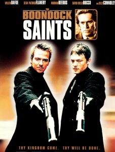It is not hard for me to say that the first act of The Boondock Saints, the first thirty-five minutes or so, is good. Not great or breathtaking or insightful or anything like that; it is through a solid piece of filmmaking. The characters are introduced, they are mysterious enough that I am interested in seeing what they do next and nothing blatantly insulting, stupid or depressing occurs. We meet our two heroes (who I will just call “Potato” and “Blarney”) in church. It is Saint Patrick’s Day and they have matching tattoos of the Virgin Mary on their necks and they are praying much harder than everyone else around them. Throughout the film both Potato and Blarney pull out and fondle (and basically fetishize) these crosses they wear ’round their necks.