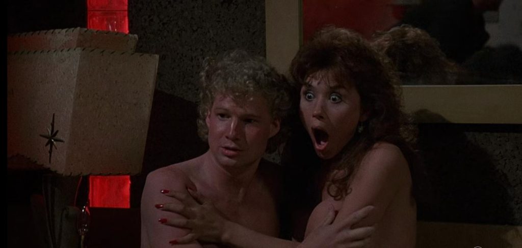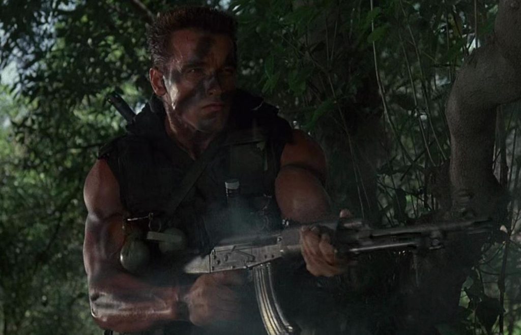 Just like it’s impossible to say how many grains of sand are on the average beach, it’s impossible to keep count of how many men Arnie kills during this awesome 85-minute bout of murderous mayhem. He’s a retired Special Forces colonel living in a secluded mountain retreat with his young daughter. He’s got a name and you can be damned sure it’s not anything lightweight or vaguely silly like Arthur Looney-Warde. Still, I forget what it is because I’m too busy salivating at the sight of him emerging from the forest carrying a fucking tree on one shoulder. My god, this is a man. The movie’s only four minutes old and I’m already on my knees in a state of worship. I’ll try again with his name. It might be Super Army Soldier. No, that’s not good enough. In this testosterone-fueled universe it would be an insult to call him anything other than Death.