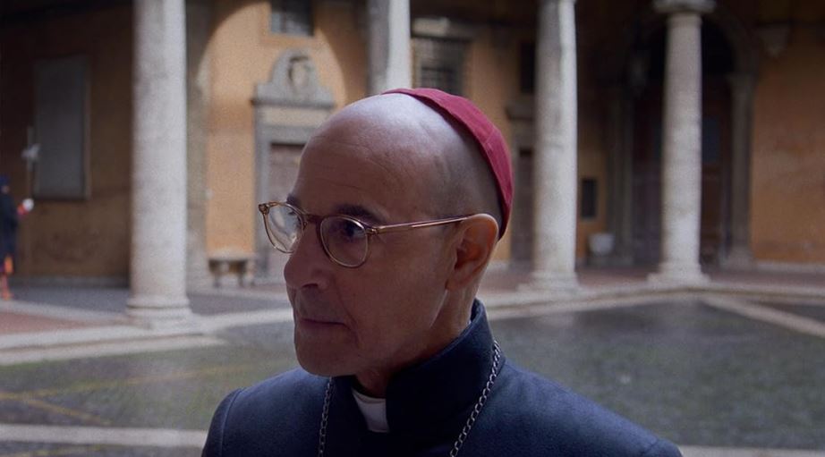 Eventually, we are introduced to the cardinals most likely to be elected. First up is Aldo Bellini (Stanley Tucci), a liberal and supported by fellow liberal Lawrence. Next is Goffredo Tedesco (Sergio Castellitto), a traditionalist, archconservative racist who views all other religions with utter contempt. Then there is Joseph Tremblay (John Lithgow), a milder conservative than Tedesco and every bit a sly politician. Finally, we have Joshua Adeyemi (Lucian Msamati), a Nigerian and middle of the road guy on most topics, but socially conservative. Lawrence himself seems like another candidate, but he stresses multiple times that he absolutely does not want to be pope.