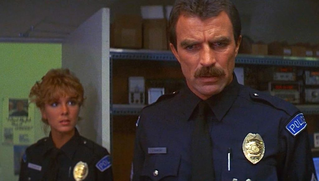 The tension-free Runaway is about a near-future police squad set up to tackle the commonplace problem of malfunctioning, possibly dangerous robots. All good, but this essentially means having to watch Tom Selleck and his foot-wide tash try to look wary of foes that are nothing more than slow-moving boxes on wheels. He’s not exactly dealing with the T-1000, you know? Even the robot security guards running amok in 1986’s cheesy Chopping Mall were more convincing. Just look at the opening scene. Here Tom is dispatched to deal with an agricultural pest controller in a cornfield. The thing is about nine inches high and looks like a radio controlled Tonka toy blowing a fuse. Why the human workers have to call in the cops to deal with it is mystifying. Poor Tom. He might as well be trying to convince us he’s up against a reckless fridge or a malevolent overhead projector.
