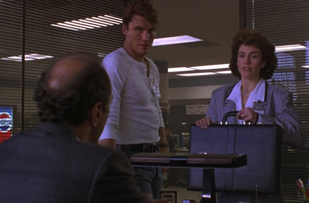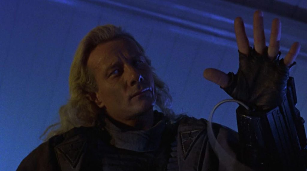 There were at least 30 deaths in Dark Angel, and they were glorious. Most of the killing was done by the Evil Alien Talec (Matthias Hues), who injected stolen heroin into the human victim’s chest, and sucked endorphins out of their brains. The White Boys (human drug dealers) killed 10 and Detective Jack Caine (Dolph) killed only 3.