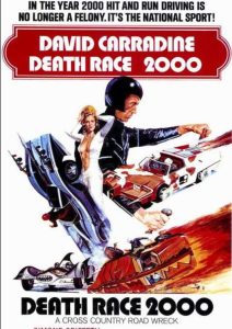 Jonny: What about the giant foam Rambo-knife that was grafted onto the front of his car? I mean, his car had two Tommy Guns and an overgrown survival knife mounted to the hood! Nowadays those weapons would be popping out and shit — or not even working at all — not so in Death Race 2000. He actually uses his Tommy Guns to run people over!
