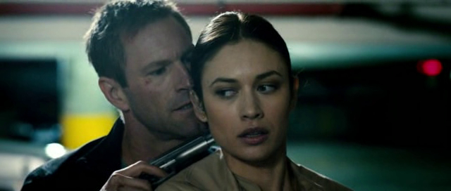 Mixed up in all of this is Olga Kurylenko, fresh off her appearance in the pretty, pretty cool Oblivion (though apparently this movie actually came out last year overseas under the title The Expatriate. They changed the name because Americans don’t know what it means.) Olga works at the CIA, allegedly knew Aaron Eckhart’s character “intimately” at one point, and is involved in the Halgate Group’s evil scheme. Late in the film, Aaron Eckhart asks her about what happened to the wide-eyed girl he met in Somalia who was ready to light the world on fire. Personally, I would have asked her if her pussy tastes like Pepsi-Cola like Lana Del Rey’s, but whatever. It was a fascinating scene that I didn’t almost fall asleep to or anything. Olga does not take her clothes off in this movie, by the way. There, I just saved you $1 at RedBox. PayPal me.