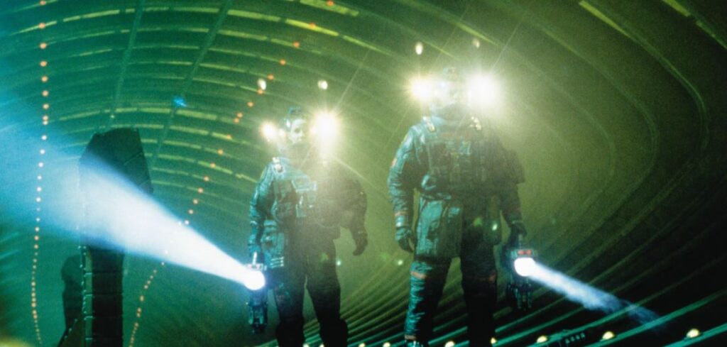 Lovely, no? This movie has an overall great look to it: from the meat grinder passageway of the space ship to the gravity drive itself, it all looks nice and spacey. Like Kevin, but with science. Directed by Paul W. S. Anderson, it initially bombed at the box office, but, as is often the case with movies like this, it then began to sell really well on DVD and has developed quite a cult following since, for whatever that means. But I care little about all that. I love this movie. What’s that, Dr. Weir? Where we’re going, we don’t need eyes to see? That’s alright, doc. I’ll just use my imagination, then…