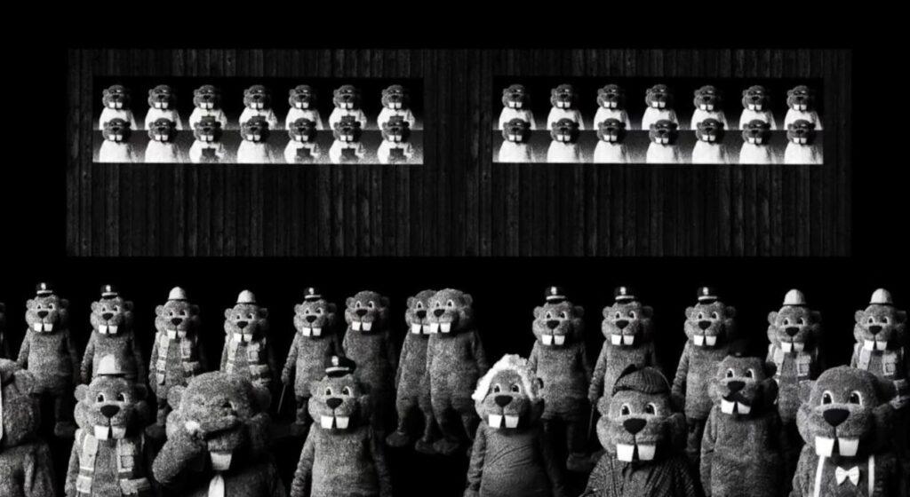 HUNDREDS OF BEAVERS – The funniest movie of the year is unlike anything I’ve seen before, though it is an inspired amalgamation of disparate influences ranging from Looney Tunes to silent movie comedies to old-school video games. The sight gags are so frequent and layered, the Rube Goldberg contraptions so elaborate and cartoon-logical, the physical comedy so brilliantly executed that I can see myself endlessly rewatching this movie for years to come. Like all great comedies, it only gets funnier with repeat viewings, and the team of multi-hyphenate auteur Mike Cheslik and star Ryland Brickson Cole Tews (who previously teamed up on the very funny Lake Michigan Monster) have crafted one for the ages. The recurring gag is elevated to an artform here, and the artificiality of the production design and effects are leaned into until they become things of beauty, with packing peanuts filling in for beaver blood and horses that are obviously two guys in a suit (it’s amazing how easy it is to just go with this until you see a third guy try to ride the “horse”). Words really cannot do this lovingly handcrafted, madcap masterpiece justice, but it is the kind of thing for which the word “zany” was invented.