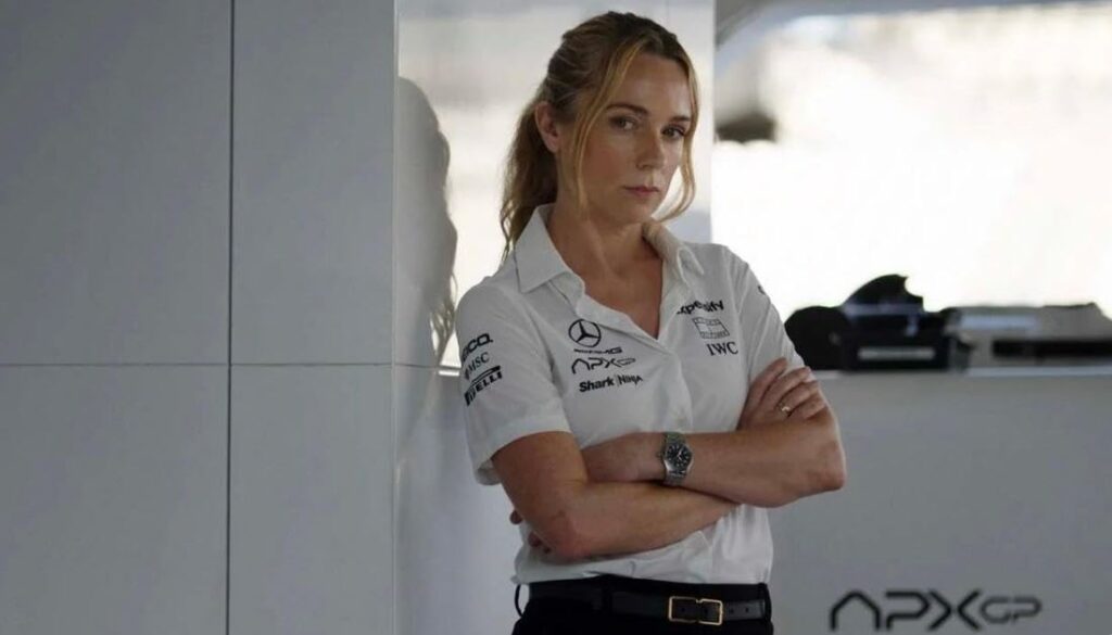 You know who else is really easy on the eyes and gives a great performance? Kerry Condon. She plays Kate McKenna, a former aerospace engineer and the team’s technical director. McKenna is the brains behind the team and the design of the car. She’s also the love interest, but the screenplay doesn’t turn her into the wide-eyed damsel pining for Hayes. Perhaps the best scene of the film features McKenna expertly handling her two head-butting drivers in a friendly game of poker to determine which driver gets to be the primary driver in an upcoming race. It’s the kind of scene and performance that confirms why she was nominated for an Academy Award (The Banshees of Inisherin).