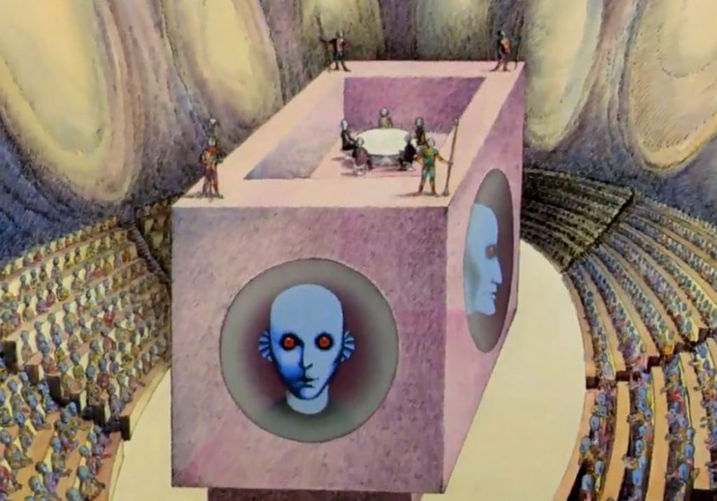 The Oms destroy some of the statues, threatening the Draags’ existence; the genocide of Oms is halted on Ygam, and, facing a crisis, the Draags negotiate for peace. The Oms agree to leave the Fantastic Planet to the Draags for their meditations, and in return, an artificial satellite is put into orbit around Ygam and given to the Oms as a new home. This leads to an era of peaceful coexistence between the two species, who now benefit from each other’s way of thinking.
