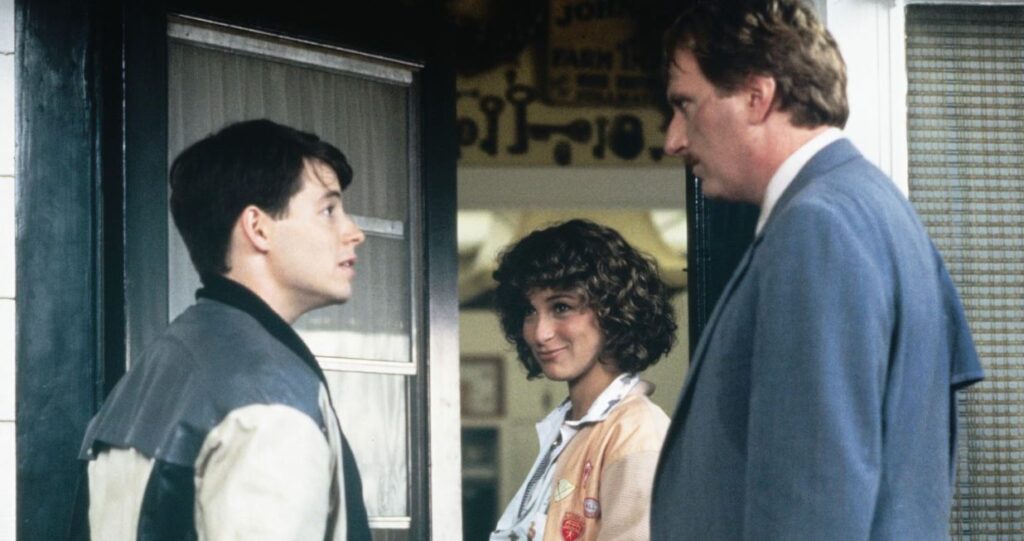 And so, Ferris Bueller is our titular protagonist, the son of successful Chicago suburban parents, lone brother to a lone sister –played with flamethrower hilarity by a pre-Dirty Dancing Jennifer Grey– we come to know as one of countless antagonists as the titular day plays out, and along the way, a best friend confronts fears of his post-high school future, a girlfriend serves as both charismatic arm-candy and His Girl Friday-style foil, and we finally confront our Big Bad, a school principal with the ethics of a snake oil chemotherapy billionaire.
