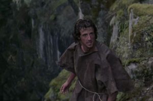 None to speak of, although Rambo utters a few words (and I mean few, given that he barely speaks until the end) as he holds a knife to the sheriff’s throat: “In town you are the law, out here it’s me. Don’t push it or I’ll give you a war you won’t believe. Let it go, let it go.” One could argue that it is Rambo who should let it go, as he has apparently been wandering around for a decade accumulating chips on his shoulder.