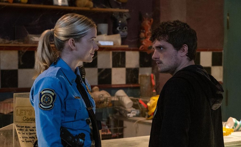 Mike Schmidt (Josh Hutcherson) is living a bit of a tough life. He works as a mall security guard, takes care of his adolescent sister Abby (Piper Rubio), is fighting off his greedy Aunt Jane for custody of Abby, and believes he can use his dreams to identify the person who, years earlier, abducted his younger brother Garrett. After getting fired from his job for assaulting a man at the mall he thought was kidnapping a kid, he visits career counselor Steve Raglan (Matthew Lillard) for job prospects. After initially refusing a job as night security guard at the dilapidated and abandoned Freddy Fazbear’s Pizza because Mike can’t work nights, Mike accepts the position to stave off Aunt Jane.