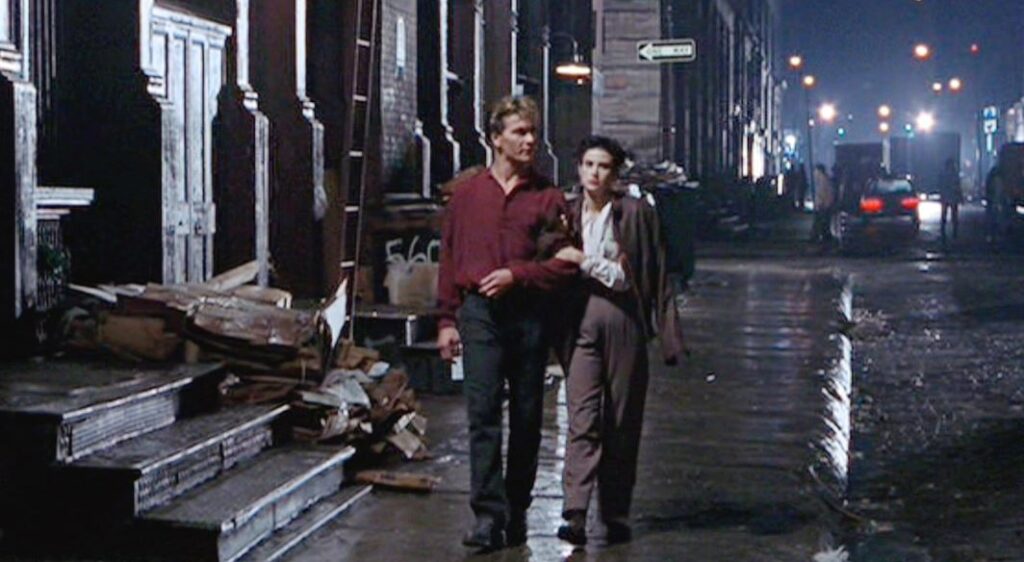 Unusually for a banker, Sam (Swayze) is an all-round good guy. He’s also moving into a Manhattan loft with his sculptor girlfriend Molly (Moore). They’re so in love, so made for each other that they might as well be floating on air. Sam, however, is a worrywart. “I just don’t want the bubble to burst,” he tells her one night in bed. “It seems like whenever anything good in my life happens, I’m afraid I’m gonna lose it.”