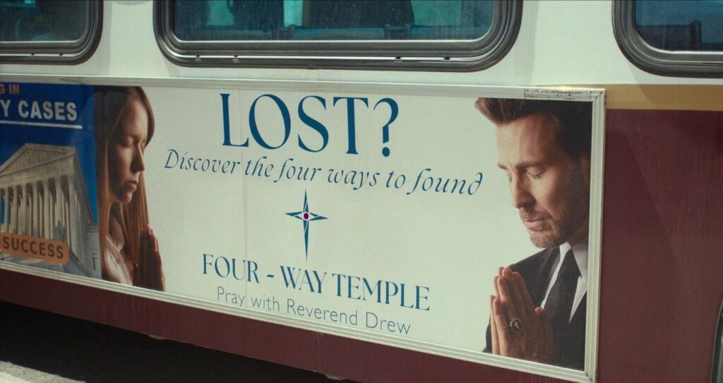 Then there is the Reverend Drew Devlin, Pastor of the Four Ways Temple: Action, Duty, Passion and, Submission. He’s not yet a billionaire nor has he been within a 1000 miles of the enchanted Epstein Island, but you just know he is up to No-Good. More-so, the Temple is the fiefdom of the mysterious entity known as only the “French” (cue: alarm bells).