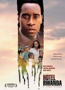 Paul’s character is better than average because he’s not one-dimensionally noble. One could argue that he’d just as soon take his family and leave, but what about his staff? The hotel where he works is more than a place to earn a living; it is a symbol of comfort and decency in a country that has shown little of either. He works the room, slips bottles of Scotch into the right suitcases, and places a few bills into the right hands because he knows how the game is played, but also because he wants to run a tight, efficient ship. So when hundreds of Tutsi refugees storm the gates trying to avoid certain death, we can imagine that Paul is horrified; not because he despises the “enemy,” but rather out of the dread that these people will disrupt the flow of business. Even after it is clear that the country has exploded in chaos, he still remains concerned about messy rooms and cluttered hallways.