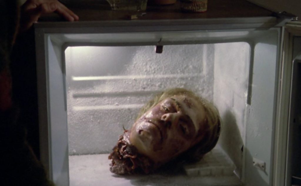 As it turns out, his death is a mere blip on the road to true love. Or sexual fulfillment, anyway. Hmm, do you think you can work out where this one is going? Macabre’s uproarious genius, though, is how far it pushes things. Jane, you see, has been keeping Fred’s severed head in her locked freezer as that was all she managed to squirrel away from the crash scene. And so she regularly pulls his swede out of the icebox to once again enjoy bouts of bedroom bliss. Now do you understand why the movies sometimes make me feel a touch insecure? I mean, I’ve got a dick and I can even move it around with a degree of competence, but no lady has ever responded to my feeble efforts in the way Jane does to Fred’s frozen noggin. In fact, going by her delirious response (“Fred… Yes… My love… Now, Fred, now!”), I’d have to say his lovemaking prowess has improved since he lost both life and body.