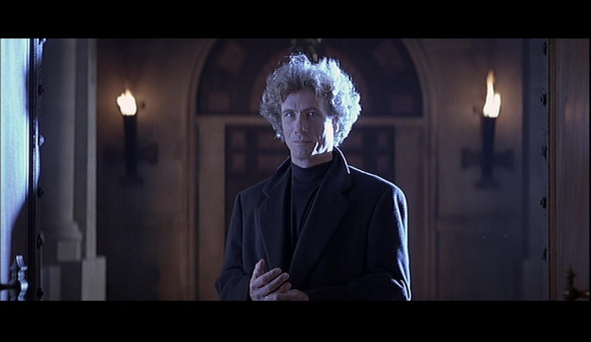In this particular popcorny flick, he plays John Trent, an insurance fraud investigator. He gets tasked by a publisher with finding Sutter Cane (Jurgen Prochnow), the Stephen King analog of this movie: a hugely successful writer of horror novels whose work, as mentioned, seems to trigger strange reactions in some people. He’s gone missing, so they send him along with Linda Styles (Julie Carmen), who works for the company, to go and find him. And then all sorts of mess-minding mayhem ensues, of course.