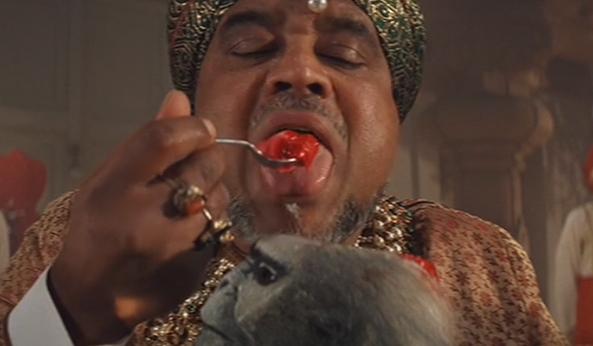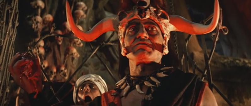 Mola Ram is a man of action, vision, and intense spirituality. He believes if he can find these magic stones while performing heart rips to these ancient chants, he can rule the whole world. It’s not clear what he will do when ruling the world, possibly ripping more hearts, mandating the wearing of devil-horned hats, or even legalizing pot. Who knows? All that is certain is that a future where Mola Ram reigns would be quite interesting. Growing up, my sister and I were mesmerized by him. Sure, we thought his savage cardiovascular pursuits were horrific, and his beliefs in some heathen God were misguided, but we ate hotdogs (do you know what they put in hotdogs!) and worshipped the sandal-wearing zombie son of a deity who lived in outer space and condoned slavery, incest, and polygamy.