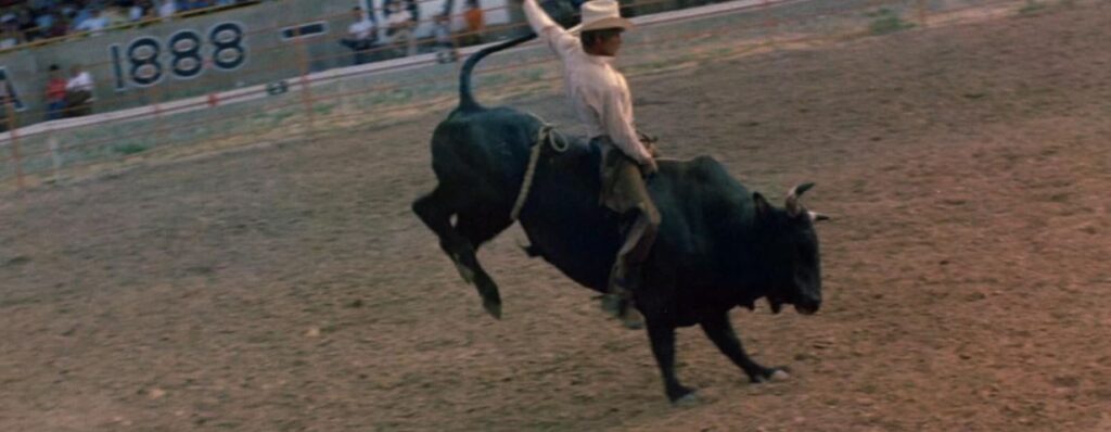 What does this have to do with Junior Bonner? Nothing much. This is the West, sir. “When the legend becomes fact, print the legend,” Ruthlessly. J.R. Bonner is a bull rider, what working cowboys call an arena cowboy, close to the end of a rodeo life. In order to get another shot at 8 seconds on the back of a mean ol’ bastard of a bull named Sunshine, and that big prize money, he travels back to his home town of Prescott for the July 4th rodeo.