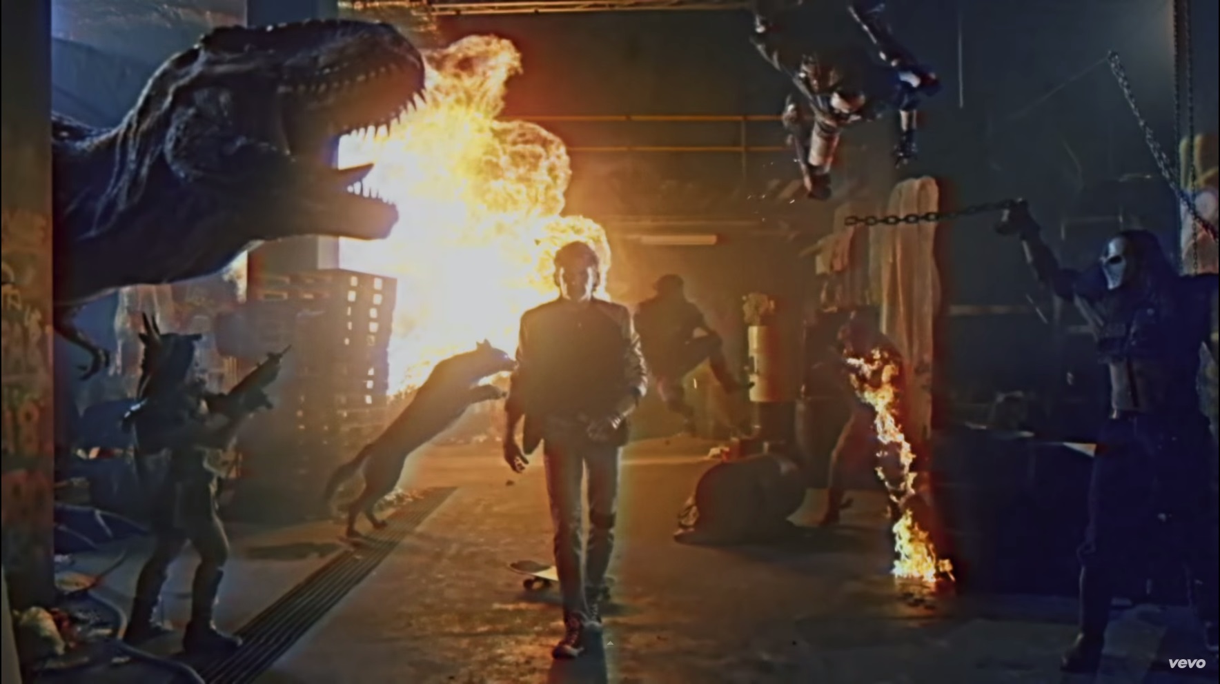 Let’s have a moratorium on the cartoonization of Nazis for a while. There are still people living among us who fought against real, actual Nazis. We should not be so comfortable producing so much pop culture content that portrays Hitler and his acolytes as simplistic villains, lazily deployed for the purpose of laughter and eventual comeuppance. No one in this generation has earned the right to portray themselves as heroic Nazi-killers, even in jest. Constructing a scene in which a CG dinosaur rips a junior Aryan supremacist in half is not an act of cinema that aligns with the brave legacy of Chaplin making The Great Dictator.