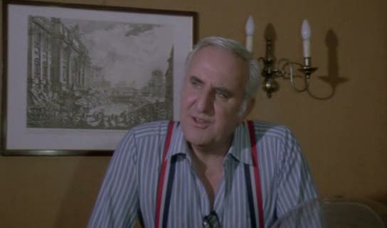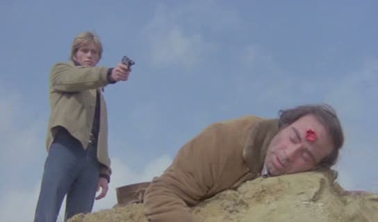Marc Porel and Ray Lovelock play our handsome, clean cut leads, and that spares me the chore of coming up with inferior equivalents to “greasy mustache” They sleep in the same room (!) though not on the same bed, and ride a motorcycle together, with Blondie on the back snugly clinging to Blackie’s torso (!!). The homoerotic angle seems slightly at odds with them constantly seducing/harassing women, so I’ll just assume they share the same lodgings and vehicle because they are a couple of lowdown cheapskates. It makes sense, then, that they dote on the Special Squad secretary with some roses they’ve just stolen from the hall. Their disgusting miserliness is further confirmed, along with other traits, by this telling exchange with their maid on the subject of her young niece: