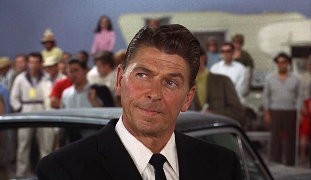 Before we can absorb the rat-a-tat rhythm of the prose, Jack has sprung from his seat and slapped Sheila with such force, it’s a wonder she didn’t lose her head. But it’s more than a blow to feminist sass; it’s Ronald Wilson Reagan foreshadowing his future. The final on-screen appearance of an actor who saw every reason under the sun to move from the sound stage to the governor’s mansion, with the White House soon to follow, simply because acting and politics have always shared a bed. A send off so hyper-masculine, he all but repealed the Nineteenth Amendment with a single blow. Dutch’s quixotic (first) campaign for the presidency officially launched on November 20, 1975, but those most familiar know it started here. With John Cassavetes looking on.