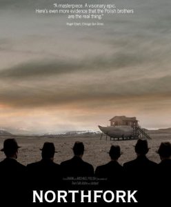 Let me dispense with the praise as quickly as possible — Northfork is a beautifully shot motion picture. The cinematography is among the best I have seen in quite some time and the style, both deliberate and contemplative, works well with the isolated Montana scenery. For the first five minutes or so, when I was lost in a sea of color and windswept plains, I genuinely felt as if I was about to see something unique and powerful. The images were so overwhelming and the mood so fraught with apprehension that I was certain the film would continue to be a joyful, developing mystery. Okay, I thought, here is a film by the Polish brothers — the team that brought us the fascinating Twin Falls Idaho — so what could go wrong? They are quirky and sometimes bizarre, but I was willing to run with it if the film stayed true to the opening scenes.