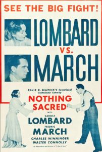 Nothing Sacred makes clear that news is entertainment first, and the source of the news is a liar. More importantly, the readers are even greater liars because their desire to believe makes the lie into the truth. When Hazel is about to be outed in a scandal, she tells the truth to key players who make it clear they have a stake in her eventual bloody demise. Of course, this would not be a truly cynical work of art if any redemption inadvertently occurred. Everyone agrees to keep the ruse alive, from the newspaper who pays for the tropical disappearance of Hazel Flagg to the readers who blubbered unconvincingly about this inspiring whomever they will never meet or care about. Nothing Sacred lacks some of the acerbic wit of Billy Wilder’s best movies, but none of their entertainment value, from the sharp dialogue to great visuals (like fawning newspaper stories about Hazel being used to wrap fish, or a restaurant advertising “Hazel dined here! – All kinds of cheese and baloney: our specialty). And of course nothing quite equals Frederic March punching a woman dead in the face.