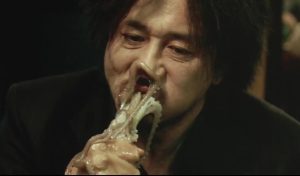 Erich loves sushi…Right off the bat, Old Boy is a Ruthless Classic. This fact is almost entirely ensured by the fact that Min-sik Choi, the actor who plays the lead character, Dae-su Oh consumes a live octopus. A real, live octopus with a head the size of my fist. The last tentacles hanging out of his mouth are still writhing. See this film, and the next time someone tells you that De Niro gained 80 pounds for Raging Bull you can just laugh. No performance in the history of cinema is more Ruthless than Choi’s.