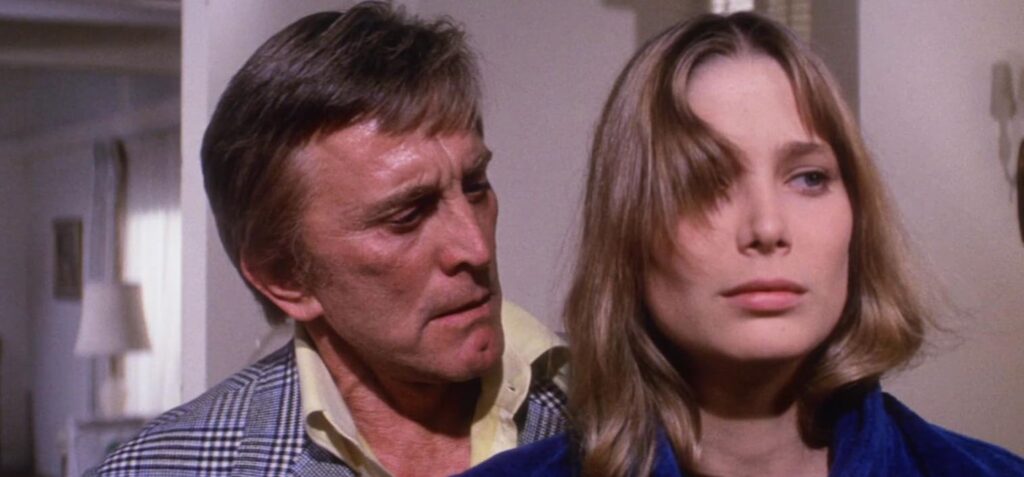 January (Deborah Raffin) is coming home. Having spent many agonizing months rehabilitating at a plush, no-dollar-spared facility in the mountains of Switzerland, she is ready to return stateside into the loving arms of her father, Mike (Kirk Douglas). The very loving arms of her father. You see, January has a father complex. Only that’s understating matters by a factor of several thousand. This is more akin to father desire. Father lust. A fetish for daddy so severe and deep, there wasn’t a Freudian alive who felt prepared to handle it. She was discharged from the institute with what amounted to a medical shrug. Hands in the air because no one had seen anything like it in a century of analysis. Craving your papa is one thing, but this chick wanted to bed down at the earliest opportunity. One of those “get her the hell out of here before we find them copulating in the x-ray lab” kind of things. Maybe it was the motorcycle accident that set her off. Perhaps. Only she was telling everyone within earshot how gorgeously sexy her dad was well before her noggin cracked open on the pavement. When the famously kind-hearted Swiss are fed the fuck up, you know you’re in trouble.