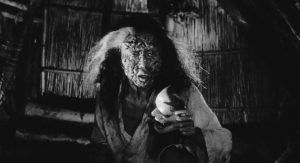 On its face, the film concerns a woman and her daughter-in-law as they eke out a brutal existence amidst tall grass and wandering samurai from distant battles. Having no real source of income or sustenance, the two hide among the swaying reeds and kill the unsuspecting samurai, selling their clothes and armor for food. After the bodies are stripped, they are tossed in a large pit where, we learn, dozens of such corpses have been thrown to rot away to mere bones.
