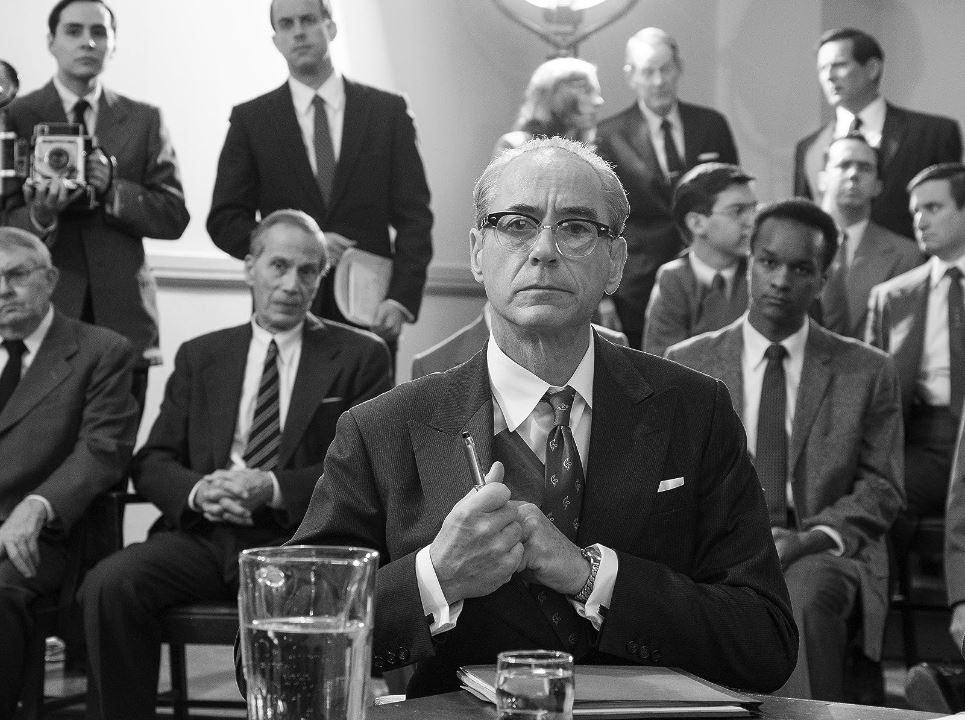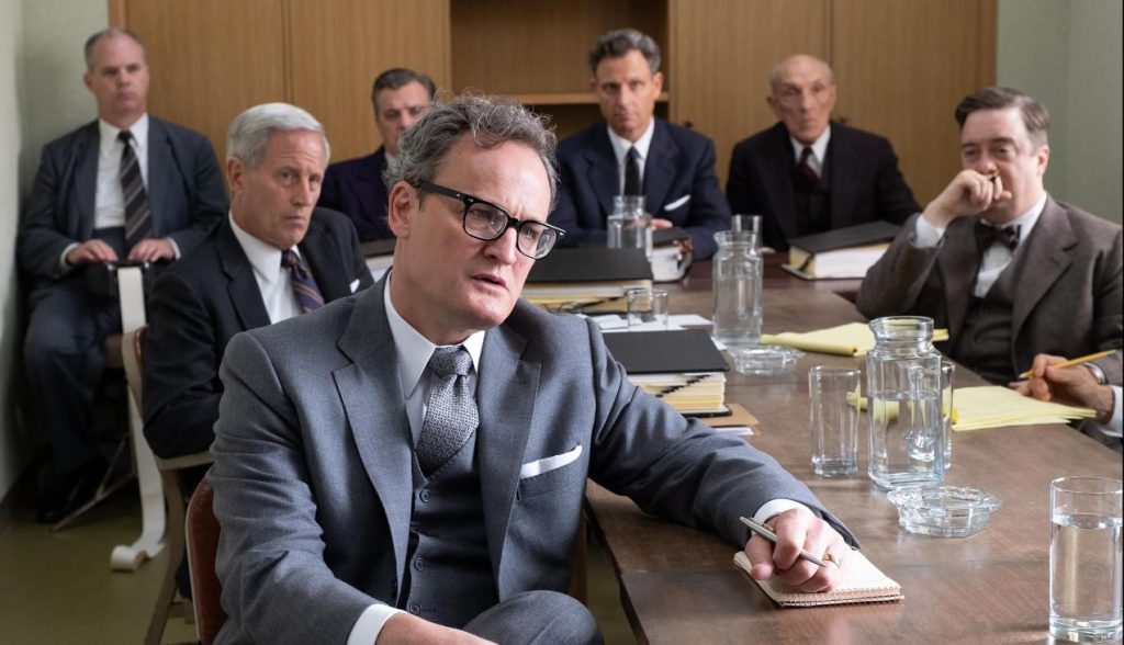 The narrative in this feature film is wisely not told in a linear fashion, unlike the series. Nolan separates scenes of Oppie’s point of view in color, with those of his absence in B&W.