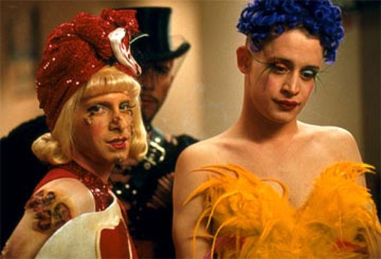 When I lived in New York I was friends with some guys who were involved with the “Club Kids” back in the good old days. Sure, they were tired old queens when I met them, but their drug hookups were still great. My point is, like Green’s St. James, and really, like almost all other humans, my friends were interesting. Yes, sure, at one point they had been totally obsessed with makeup, rib-removal and leather dresses, but something ueled them. They were passionate about their mega-narcissism for a reason. And even if it was a bullshit reason, at least they had magnetic personalities. Culkin had none of that–no personality, no reasons–nothing, and unfortunately Party Monster fatally suffers because of him. Too bad though, cause not only did the film look great, but Party Monster really is a fascinating story worth telling right.